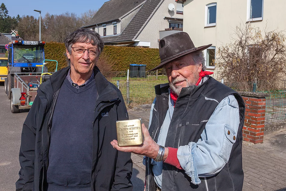Bei bestem Frühlingswetter und unter Beteiligung von bis zu 30 Teilnehmern ließ Gunter Demnig es sich nicht nehmen, die Stolpersteine persönlich zu setzen. Sie alle erinnern an Lägerdorfer, die Opfer der nationalistischen Diktatur im Dritten Reich geworden waren. Uwe Erickson gab dazu die notwendigen Erläuterungen.