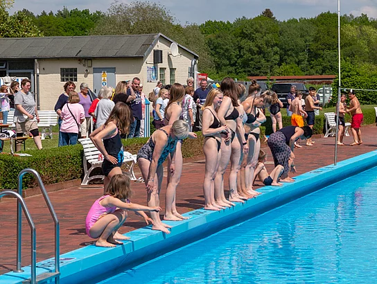 Bei herrlichem Frühlingswetter ging am Sonntag die Eröffnung der Freibadsaison vorstatten. Nach dem Konzert des Musikzuges der Freiwilligen Feuerwehr Lägerdorf und den Eröffnungsansprachen durch Bürgermeister Jürgen Tiedemann und des FFL-Vorsitzenden Peter Böge freuten sich vor allem die zahlreich erschienen Kinder auf den Startschuss zum Anbaden. Auch wenn die Wassertemperatur noch alles andere als einladend war, sprangen sie tapfer in die Fluten.