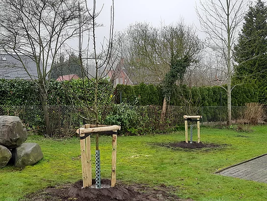 Weiter wurden im Berliner Wettbewerb auch die Neuanpflanzungen von 6 Obstbäumen, allesamt alte Apfelsorten an der Liliencronschule, aufgelistet. Durch einen Sponsor, der unbekannt bleiben möchte, wurden diese Anpflanzungen finanziert. Dafür unser ausdrücklicher Dank. Sowohl die Bienen als auch die Kids der Schule werden diese Apfelbäume nutzen: Die Bienen zum Nektar auffangen und bestäuben der Blüten, die Kids beim Probieren der alten Sorten. Allein schon die Namen sind ungewöhnkich und interessant: Finkenwerder Herbstprinz, Seestermüher Zitronenapfel, Altländer Pfannkuchenapfel usw.