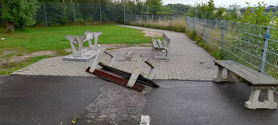 Man hat ja schon so einiges von Chaoten in Lägerdorf erlebt. Was sich jetzt jedoch am Aussichtpunkt Heidestraße abgespielt hat, ist nahezu unfassbar. Welche Vollidioten waren da am Werk? Schlimm genug, dass fest verschraubte Bänke und Tische zerstört werden, dass aber auch die Absperrgitter am Bahnübergang, die ja der Sicherheit der Benutzer dienen, aus den Verankerungen gerissen werden, ist nahezu unglaublich. Der Zugverkehr musste daraufhin aus Sicherheitsgründen vorläufig eingestellt werden. Selbstverständlich hat die Firma Holcim als Eigentümerin der Flächen Strafanzeige gestellt.