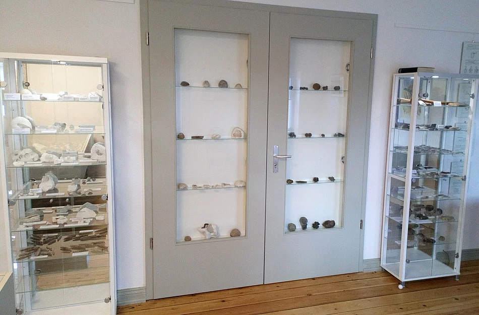 Aus Platzgründen wurde die bisherige Verbindungstür zum nächsten Raum „Fossilien und Steinzeit“ vorerst geschlossen, so dass sich dadurch weitere Ausstellungsflächen ergeben.