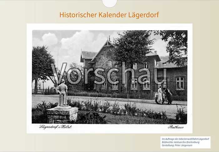 Der neue historische Kalender über Lägerdorf ist da. Der Kalender hat eine Größe von 30 x 20 cm im Querformat. Es handelt sich dabei um einen Alljahreskalender, d.h., er kann über mehrere Jahre verwendet werden.  Der Kalender ist in einer Auflage von 100 Stück erschienen. Er ist bei der AWO Lägerdorf (Tel. 04828-808 995 59) und im Heimatmuseum während der Öffnunszeiten erhältlich. Der Verkaufspreis beträgt 10,00 €. Eine Vorschau auf den gesamten Kalender findet sich weiter unten.