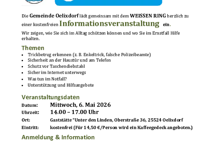 Informationsnachmittag mit dem Weissen Ring in Oelixdorf