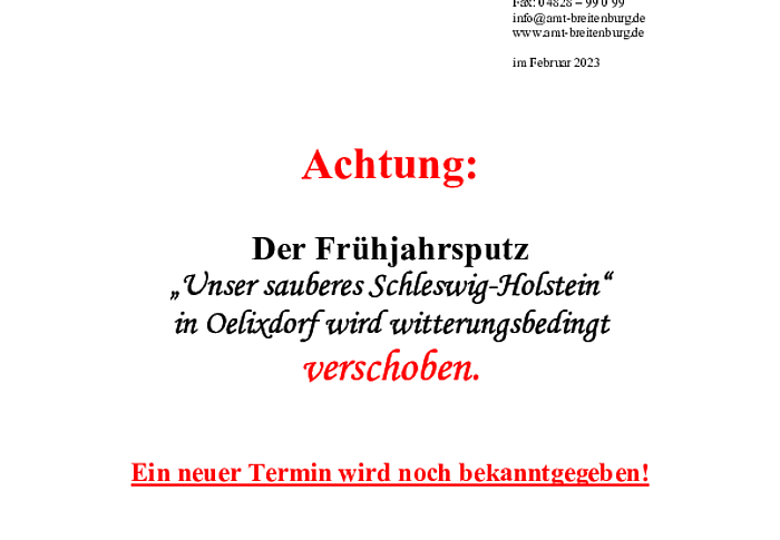 Aktion "Sauberes Schleswig-Holstein" Oelixdorf wird verschoben