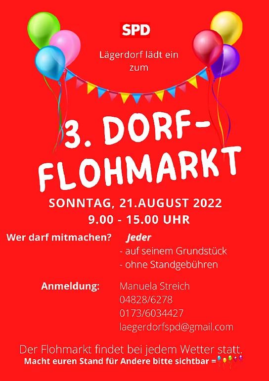 Anmeldung bei Manuela Streich unter 04828/62 78 oder Mobil unter 0173/6034427, per Mail an laegerdorfspd@gmail.com